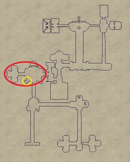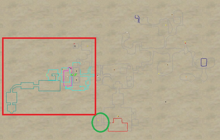 The green circle on the map is where the statue is that you’ll need to click to get to the west area of Acrylia Caverns . The Red square represents the area in which the shard can drop. Kill any “grimling” graphic mobs (including sanctum mobs) within the red box.