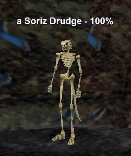 The Ssraeshza Temple shard drops off the skeletons in the caverns of the temple basement. It will drop off the higher level skeletons in the back. a Poxed Soriz , a Soriz Corpse , and a Soriz Drudge .
