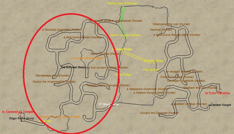 The Deep shard mainly drops off most “thought horror” model mobs on the west side of the zone. If you come in from the Echo Caverns, you’ll need to cross the invisible bridge.