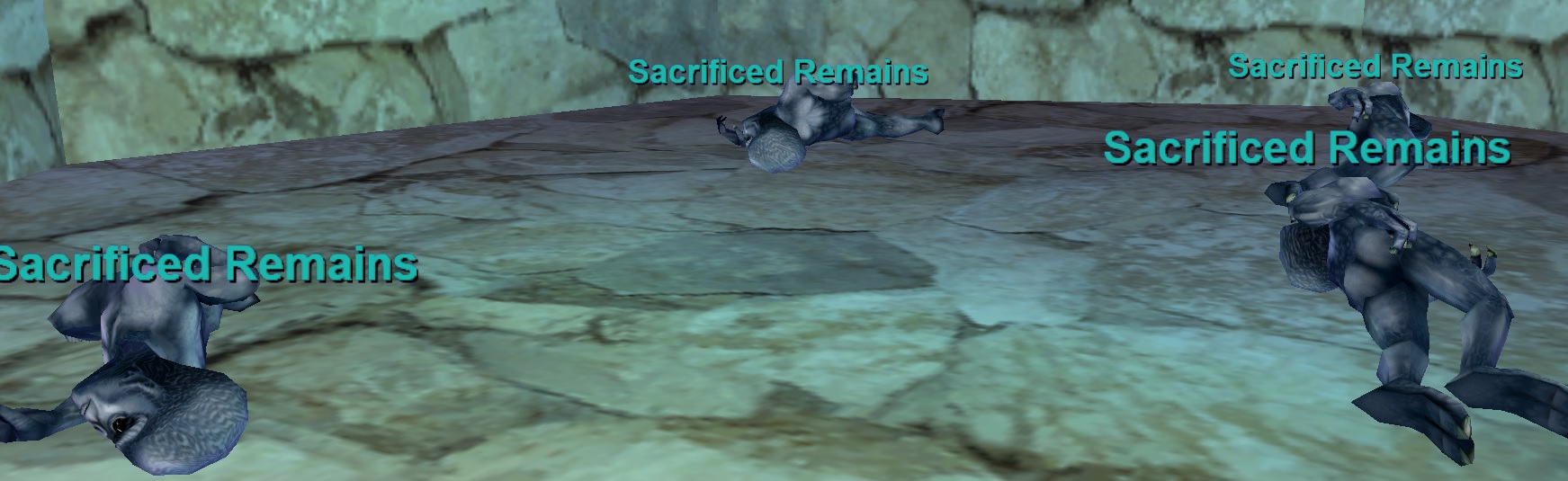 Head to the spot on the map and on a small ledge you’ll see four Sacrificed Remains. They have approx. 5 min respawn. Keep killing them until a shimmering presence spawns. Once it does, give it your Summoned: Wisp Stone . Doing so will spawn The Spirit of AkelhaRa** . Give **The Spirit of AkelhaRa your Essence Emerald to receive Shadowed Scepter Frame .